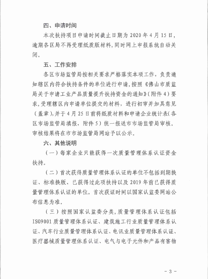 佛山市市场监督管理局关于做好2020年质量管理体系认证扶持资金申请工作的通知:(原文如下)