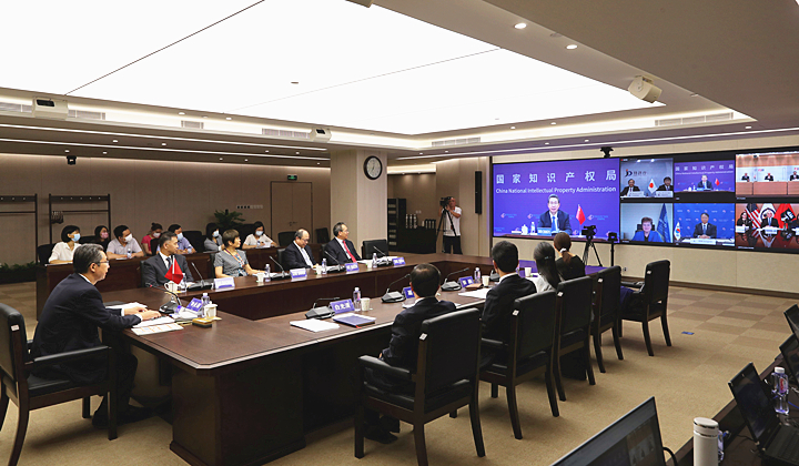 6月22日至23日,第十四次中美欧日韩知识产权五局(IP5)合作局长系列会议以视频会议形式举行,会议由日本特许厅轮值主办。中国国家知识产权局局长申长雨率团出席。日本特许厅长官糟谷敏秀主持会议,欧洲专利局局长安东尼奥·坎普诺斯、韩国特许厅厅长金龙来、美国专利商标局代理局长德鲁·赫希菲尔德分别率团出席。世界知识产权组织副总干事丽莎·乔根森作为观察员列席会议。