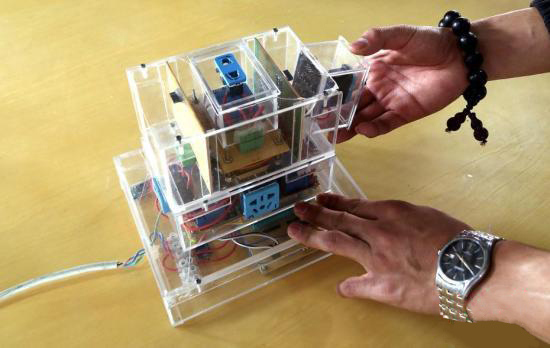 资料图:青海省西宁城市职业技术学院学生经两年研发的点智通-模块化智能插座获实用新型专利。